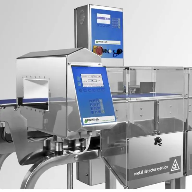 La 08D3 integrada compacta es la solución ideal para el control completo de la producción: el producto se inspecciona en primer lugar por un detector de metales MFS; si el control no detecta contaminantes el producto continúa su camino sobre el plato de pesaje, donde ahí se comprueba la conformidad del peso.