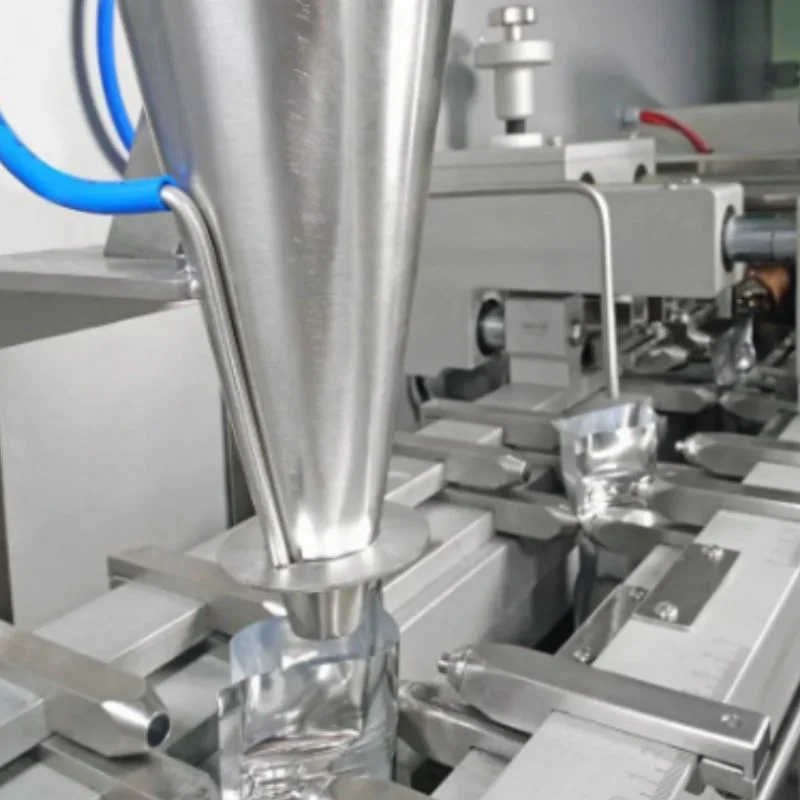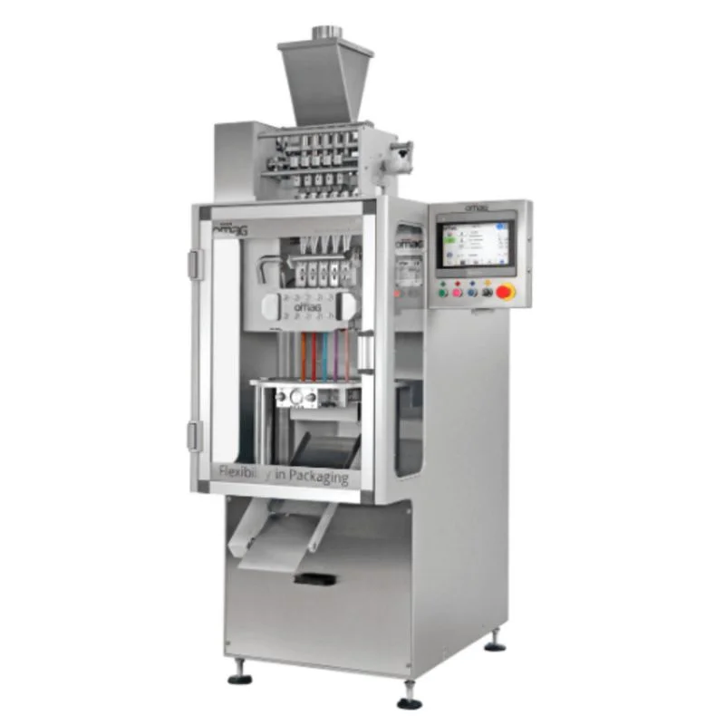 Máquina envasadora vertical diseñada para producir paquetes tipo stick, especialmente para azúcar. Es la opción más eficiente para lotes pequeños de productos.